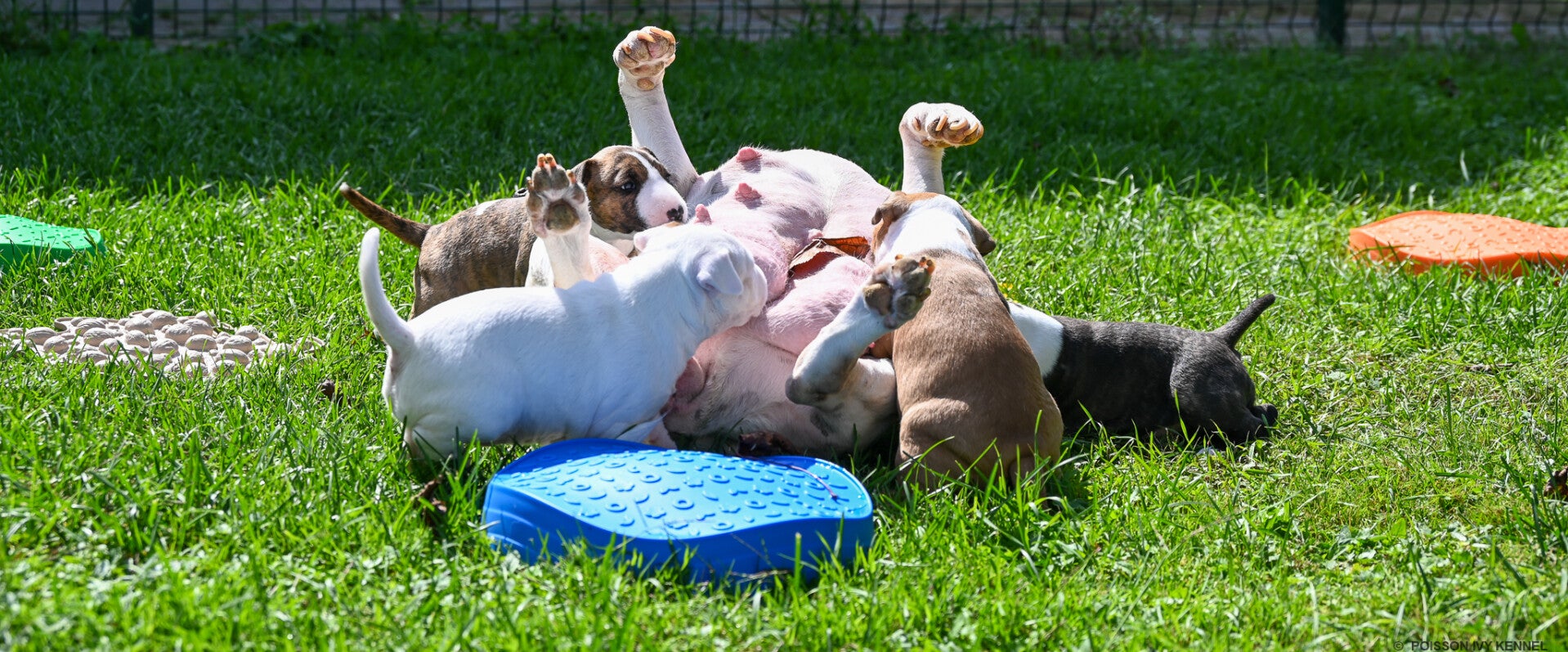 Naši mali bullterierčki so dopolnili 4 tedne – in to pomeni, da so zakorakali v čisto nov svet! 🌍✨